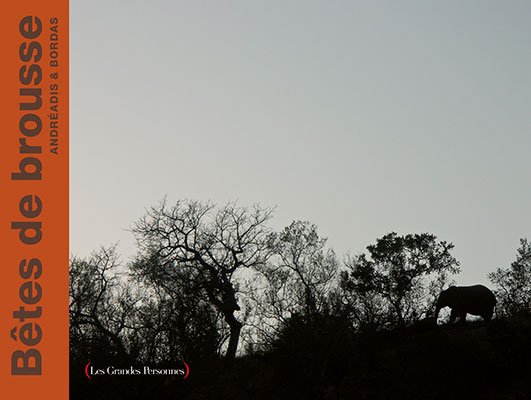 Bêtes de brousse est un livre de photographies réalisées dans le Parc national Kruger en Afrique du Sud. Ianna Andréadis et Franck Bordas s’y sont rendus à de nombreuses reprises, en compagnie de leurs fils âgés de 14 et 16 ans. Ils en sont revenus avec quelques milliers de photos. Dans cet ouvrage, les correspondances établies par double page, les grands panoramas et l’enchaînement des scènes diurnes et nocturnes restituent toute la vie de la brousse et de ses habitants, sa beauté, sa cruauté et toute sa poésie. Un livre original, qui, sans texte – hormis une petite introduction – raconte plein d’histoires.