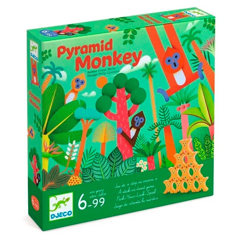 Pyramid Monkey és un divertit joc de taula familiar en el qual els jugadors desenvolupen habilitats d'estratègia i prenen decisions clau en cada torn. L'objectiu és construir la teva piràmide de micos abans que els teus oponents, però vigila! Els micos traïdorencs poden jugar-te una mala passada i posar en perill la teva estructura.