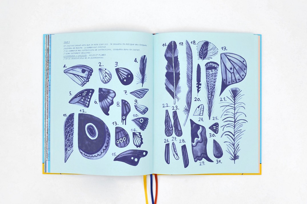 L’autrice nous ouvre le Carnet de voyage de Billy, entre le journal intime et le manuel de survie. Ou y retrouve, jour après jour, les observations, pensées, souvenirs et croquis à l’aquarelle de Billy. C’est l’occasion d’apprendre tout ce qu’il a emporté dans son sac à dos, de découvrir les recettes des repas qu’il se prépare et la canne à pêche qu’il se fabrique, de s’émerveiller devant ses dessins de plumes ou de pierres…