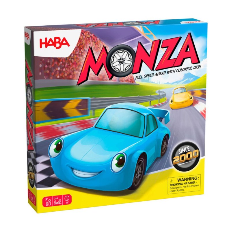 Construye tu propia pista de carreras, ¡un circuito nuevo cada vez! Con 6 elegantes coches de carreras de madera. El clásico de HABA desde el año 2000, ¡ahora recién renovado!En Monza, además de un veloz coche de carreras, se necesitan tácticas astutas y un poco de suerte. Los dados de colores indic...