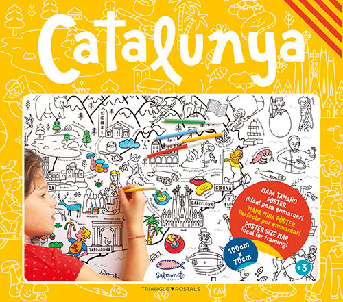 ¡Toda Cataluña para pintar y descubrir a lo grande! Mapa tamaño póster, perfecto para enmarcar (100x70 cm).