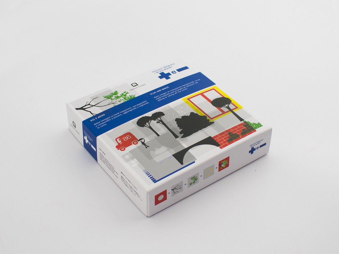 In 1968 Munari published The circus in the mist, in which he created fascinating images by using his own way the "seethrough" effect. The bright colours of the circus are preceded and followed by the veiled dullness of Milan’s fog: in this vague environment the blurred outlines of the figures become clear by leafing through the book. Two years later, in 1970, Munari dealt again with the theme of transparency by conceiving with Giovanni Belgrano Plus and Minus. Not a book but a game, composed by several images on transparent backgrounds, which can be superimposed and mixed at one’s pleasure by adding or removing them. In these square cards the colour is perfectly balanced with the drawing, and together they tell stories. Stories which are bonded together by the imagination of the players, who can create countless combinations using the suggestions at their disposal, without predetermined rules.