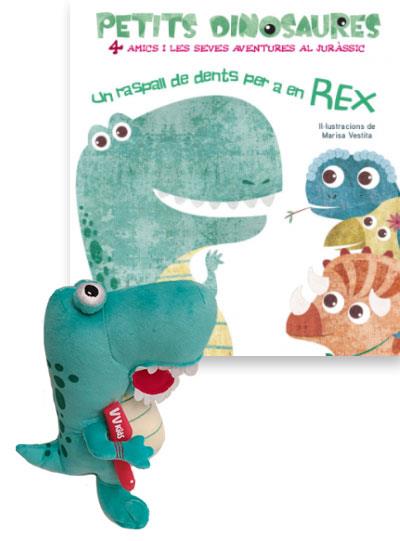 Juga i aprèn amb el teu dino-amic Rex. Un pack molt complet on trobaràs: El llibre Un raspall de dents per a en Rex, un ninot de Rex amb un raspall de dents de VVKids, i una bossa en la qual podràs portar tots els teus llibres favorits.