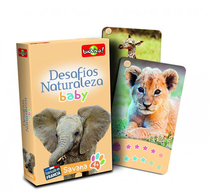Desafíos Naturaleza permite descubrir a los más pequeños los bebés animales de la sabana. Apuesta y compara el peso al nacer o el número de crías para llevarte todas las cartas y ganar el juego. ¿Preparado/a para asumir el reto?