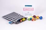 Juego de Canicas que contiene 20 canicas de diversos tamaños y colores. También incluye bolsa de tela y las instrucciones de diversas modalidades de juego de canicas.