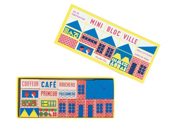 En 2015, Moulin Roty quiso enriquecer su universo con el de Aurélien Débat, encargándole ilustraciones para la gama de juguetes de metal. Esta colaboración -enriquecedora y simpática- ha desembocado este año en la creación de una colección, basada en los juguetes que tuvo el mismo Aurélien. Entre grafismo, arquitectura y juguetes de antaño, las formas y el color se convierten en volúmenes y espacios centrados en los juegos y en el mundo imaginario.