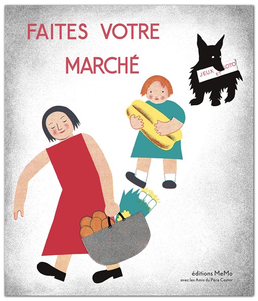 Faites votre marché, publié aux éditions du Père Castor en 1935, s’inscrit dans une collection de livres-jeux dans laquelle il s’agissait d’exercer les capacités de l’enfant, telles l’observation, la mémoire, la comparaison, la déduction, la lecture, l’imagination et le sens esthétique. Cet album vise à enrichir le vocabulaire en nommant avec précision chaque objet. L’enfant peut tour à tour approvisionner les boutiques, vendre ou acheter les denrées et organiser des jeux de loto. Le réalisme des objets, marchandises ou outils, relatifs à chaque commerce, est magnifié par les couleurs vives et le découpage précis du trait de Nathalie Parain. Pochoirs et rehauts de peinture sont, comme à son habitude, particulièrement beaux. Bien que certains de ces commerces, tel le Bazar-couleurs, soient moins présents au quotidien de ce siècle, presque toutes les enseignes et les cartes sont toujours contemporaines et d’une modernité graphique qui rend leur réédition totalement accessible aux enfants d’aujourd’hui.
