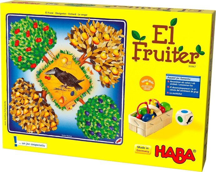Los árboles del Frutal están cargados de frutas y el pícaro cuervo quiere hacerse con todas. Los jugadores intentan cosechar la fruta antes que el cuervo. En función del dado, los jugadores podrán recolectar una o dos frutas de un árbol e introducirlas en la cesta o colocar una pieza de puzzle en el centro del tablero. Si consiguen recolectar toda la fruta antes de que el puzzle del cuervo esté terminado, los jugadores ganarán la partida.