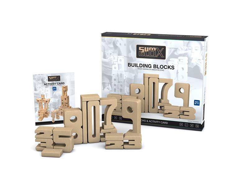 Bloques de madera de haya maciza con una particularidad: las 47 piezas son números (del 1 al 10)