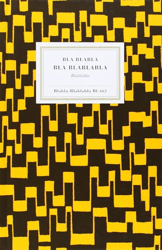 La Metamorfosis, de Franz Kafka, traducida del alemán sustituyendo cada sílaba con un bla. La maquetación, tipografía, diseño y encuadernación imitan una edición de Insel Verlag.