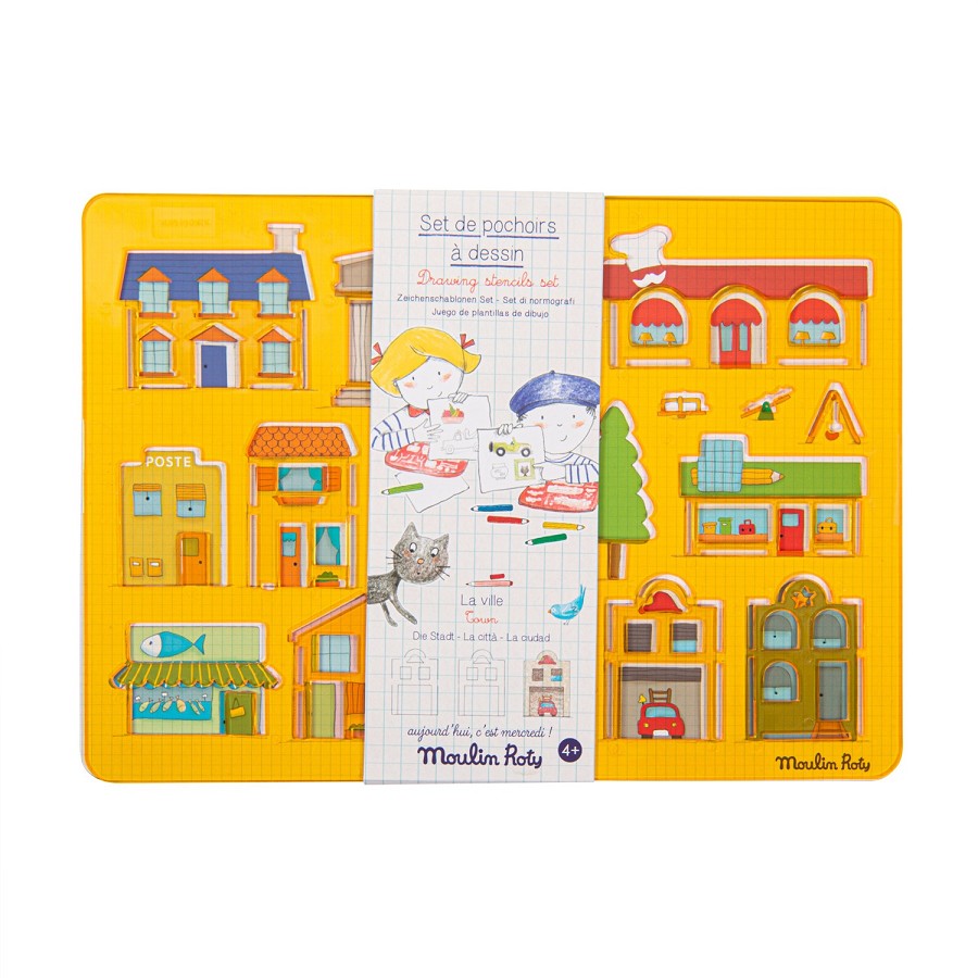 Set de plantillas para dibujar elementos de la ciudad, de la colección "Aujourd'hui c'est mercredi" Con este set de plantillas tu peque podrá dibujar fácilmente toda una ciudad: casas, árboles, museos, tiendas...Incluye 2 plantillas de plástico duro, lavables y reutilizables, ¡para toda la infancia!...