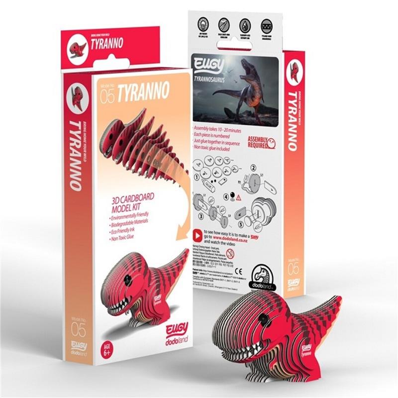 Este dinosaurio terrestre de la era secundaria, es un mini puzzle 3D que se monta en unos 20-30 minutos. Una vez montado, podemos jugar con él, utilizarlo como elemento decorativo o indagar un poco más y descubrir más cosas sobre los dinosaurios con nuestro tiranosaurio en la mano.