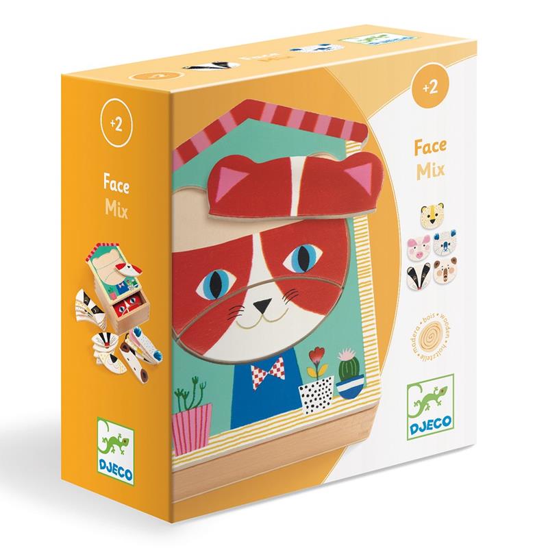 Características · Incluye 5 puzzles de madera.Puzzle Face Mix · Posibilidad de combinar las piezas. · Fabricado con madera. · Edad: A partir de 24 meses.