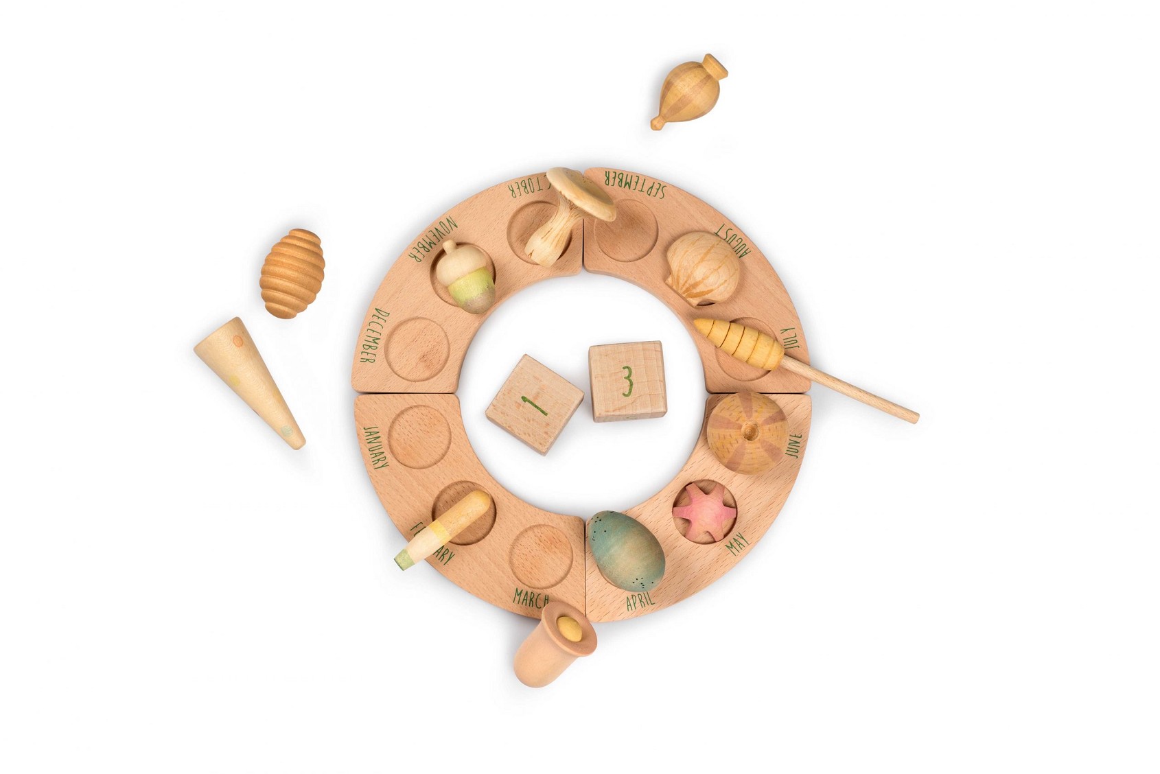 12 elements del regne de la flora, per connectar l’infant amb els canvis cíclics de la natura i per atresorar i reconèixer els regals de la mare terra cada mes de cada estació. Wonders es pot combinar amb el calendari perpetu o pot ser material no estructurat per a qualsevol activitat de joc obert.E...