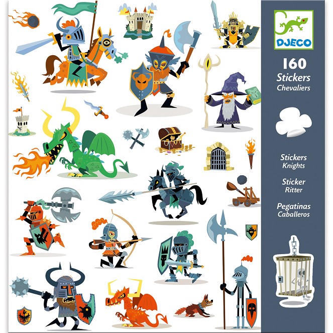 Precioso set con 160 pegatinas de valientes caballeros, castillos y dragones.