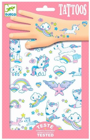 Tatuajes para un look diferente lleno de unicornios!!Testados dermatológicamentePara colocarlos, solamente se necesita limpiar y secar la zona de la piel donde se quiera poner, aplicarlo y apretarlo firmemente hasta que quede pegado.Los tatuajes temporales pueden durar entre 2 y 7 días aproximadamen...