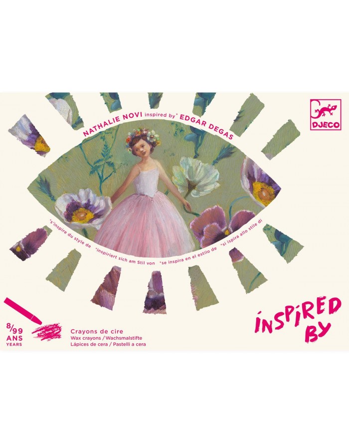 Actividad de pintura con ceras e ilustraciones inspiradas en el pintor impresionista Edgar Degas.El niño agrega colores gradualmente, los superpone para crear sombras y luz en los pliegues de las telas.Recomendado desde los 8 años.Ceras que se pueden usar como pasteles al óleo.Un material muy pigmen...