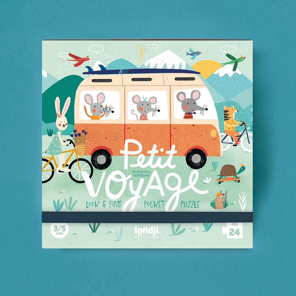 Conductors prudents, ciclistes feliços i camioners carregats de gelats. Que no s’acabi mai aquesta carretera! Un cop muntat el puzle hi ha un petit joc. Qui serà el primer en trobar els 10 conductors? Un puzzle petit de 24 peces i un joc d'observació de cotxes i bicicletes en versió de butxaca, per a què puguis dur-los a tot arreu. Fets amb molt cura a Barcelona.