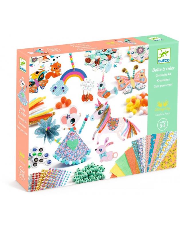 Juego de manualidades para desarrollar la destreza y la creatividad.Ideal para aprender las formas, las texturas y los tamaños.Set de manualidades con montones de materiales para realizar diversas actividades: collage, montaje y recorte.Caja con dos pisos con cuentas, pompones, pegatinas, hilos... p...