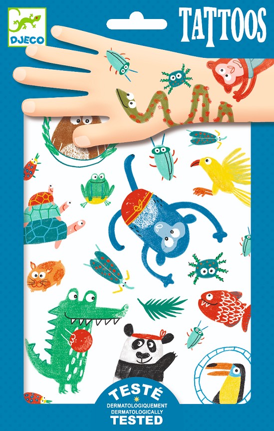 Animales con mucho color para tatuarse. Dermatológicamente probado. A partir de 3 años.