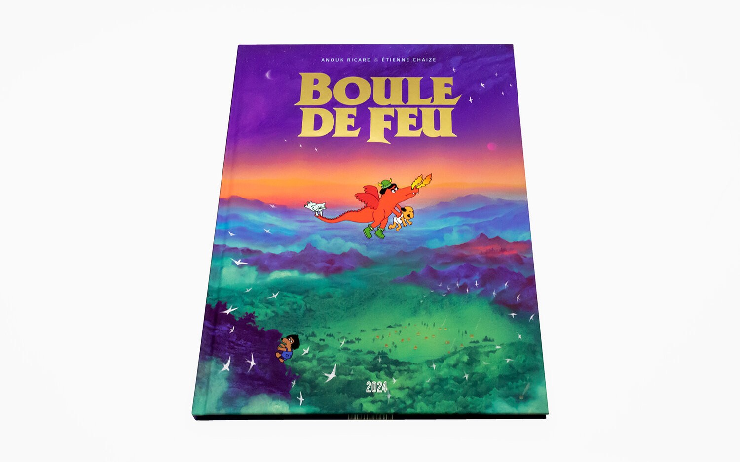 Bravant les dangers du portail inter-mondes, c'est le fidèle Fernando qui ira chercher le Sage. Didier, sa moustache, et son petit chien Rocky pourront-ils l'aider dans sa quête ? Prisonniers de la cruelle Reine des Chevoules, perdus dans les brouillards des Marais de Morve, Fernando et le Mage Pueblo parviendront-ils à sauver leur village ? Rocky et Didier reverront-ils leur coquet appartement ? Vous le saurez en lisant Boule de feu, le nouveau livre d’Anouk Ricard et Étienne Chaize !