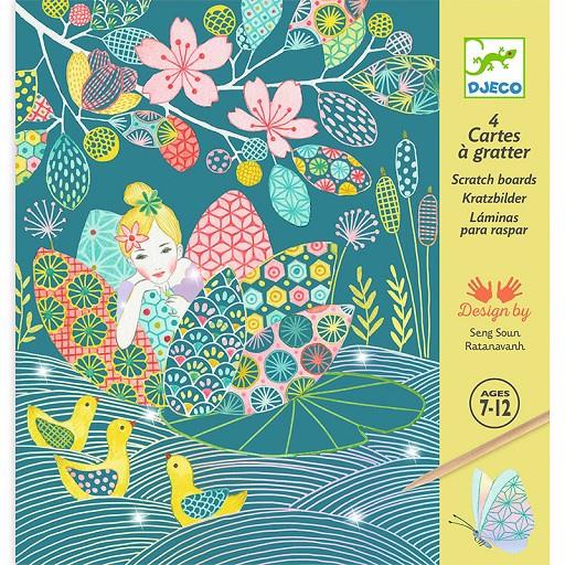 4 cuadros para rascar paso a paso y descubrir unas ilustraciones de bonitos colores
