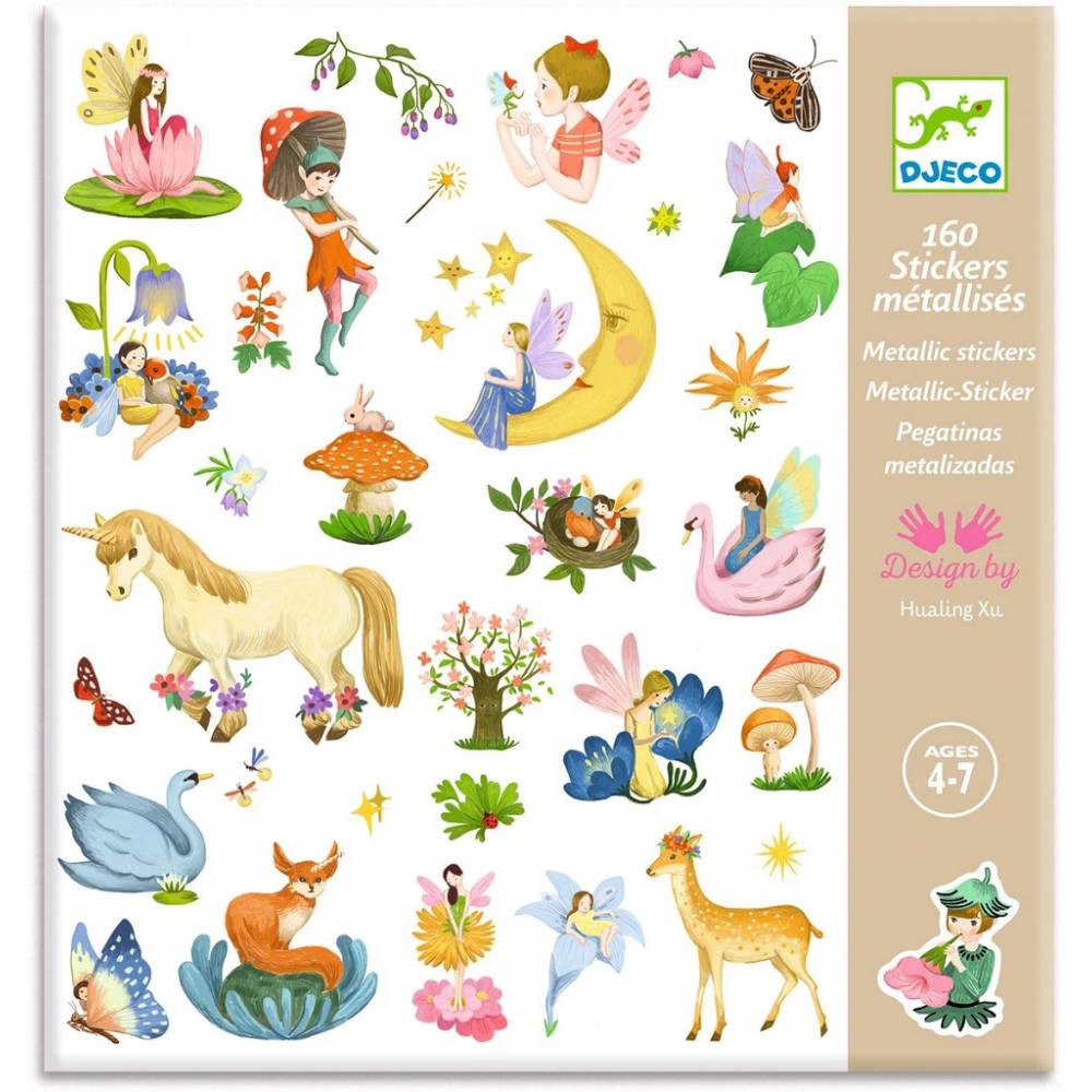 160 chulísimas pegatinas con efecto metalizado y diseños de un mágico y dulce mundo lleno de Hadas, Elfos y Animales Mitológicos.
