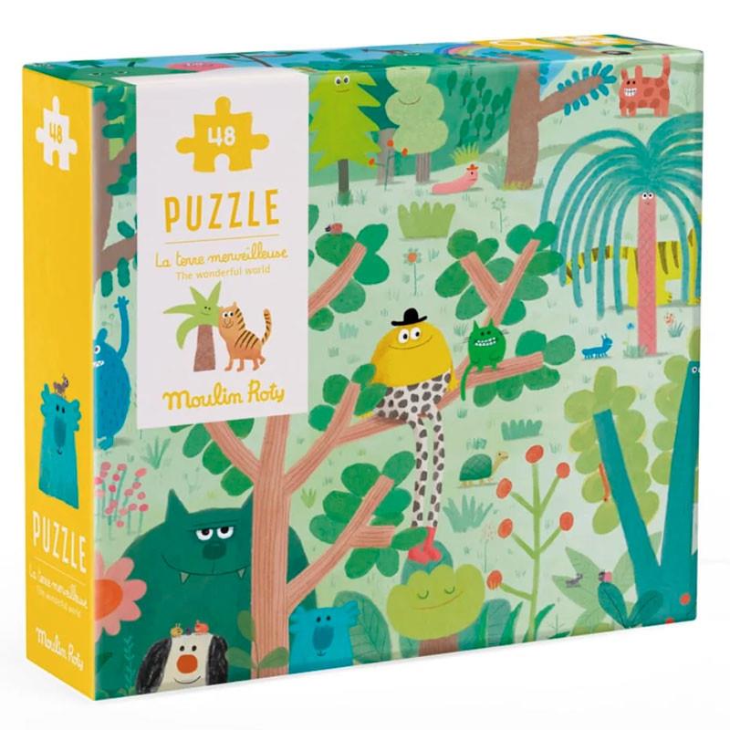 Un puzle per als més petits amb un munt de personatges i tons verds. 48 peces de cartó robust i fàcil de manejar. Benvingut al simpàtic món dels Schmouks de Moulin Roty