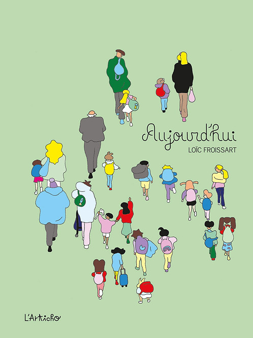 Aujourd'hui présente planche après planche, presque minute par minute, des bribes de vie qui se déroulent au sein d'une école. Comme une rapide photographie, chaque page saisit l'instant présent et le fige en quelques vignettes. On entend quelques voix, on assiste à des échanges, on glisse un œil au sein d'une classe, on épie dans les bureaux. Parfois les élèves sont au cœur de la scène, d'autres fois c'est au tour des adultes d'être mis au premier plan. En quelques vignettes, l'émotion a le temps de naître, une histoire commence et, hop, le regard change, le temps se déroule et la journée défile. Loïc Froissart offre ici des bribes d'une journée, celle de cet aujourd'hui qui semble si unique et paradoxalement répétitif.