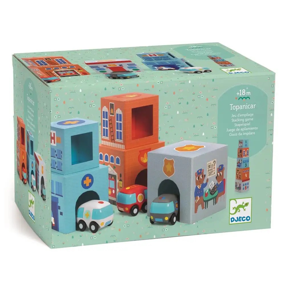 5 bloques ilustrados que albergan 3 vehículos para jugar y construir una encantadora ciudad. Muchas formas de jugar: los niños pueden apilar los bloques para crear una torre o unirlos. También podrán jugar en el suelo y recrear todo tipo de diseños de ciudades, o incluso simplemente jugar ellos solos con los vehículos. Hay historias maravillosas que contar con este completo juego.