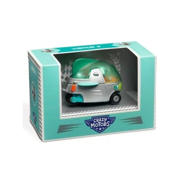 Visitor X. Crazy Motors de Djeco. Descubre Visitor X de la colección Crazy Motors de Djeco, un coche de metal con su conductor fijo en su asiento (no es extraíble). El coche dispone de suspensión en las 4 ruedas. Modelo en miniatura a escala 1:43.