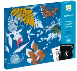 Compatible con los sets de cianotipia de Djeco, estos recambios de papel fotosensible se pueden usar por sí solos con tus propios patrones o con los patrones impresos que se proporcionan. Al exponerse a la luz solar, se produce un negativo de los patrones en el papel. Luego, todo lo que necesitas hacer es enjuagar el papel en un baño de agua limpia y observar cómo tus creaciones aparecen en el fondo azul. ¡Todo lo que necesitas para crear 8 delicadas y poéticas composiciones!