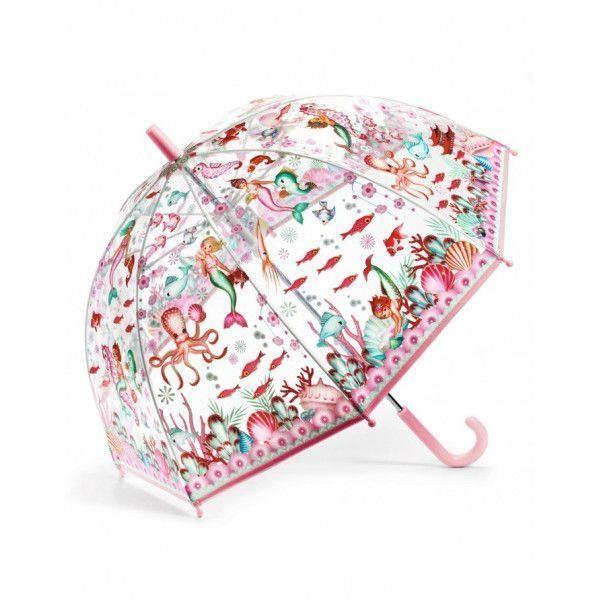 Paraguas para niños y niñas Sirenas. De fácil apertura y cierre manual. Fabricado en plástico transparente con bonitas ilustraciones.