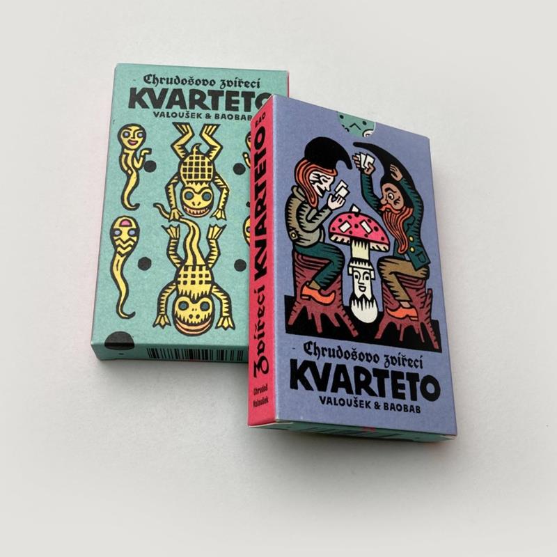 A joyful card game for the whole family by master engraver and recipient of the Order of the Green Ladybug, Chrudoš Valoušek. Featuring 32 playing cards, the game introduces 8 families of animals: domestic, useful, parasitic, mythical, legendary, marine, amphibious, and nocturnal.