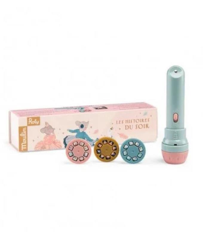 Es una pequeña linterna (pilas incluidas) a la que se le pueden insertar tres ruedas con diferentes imágenesUn imprescindible a la hora de contar cuentos en la cama, que transforma la habitación en un espacio mágico, recuperando el encanto de las diapositivas o los antiguos proyectores.Se compone de...