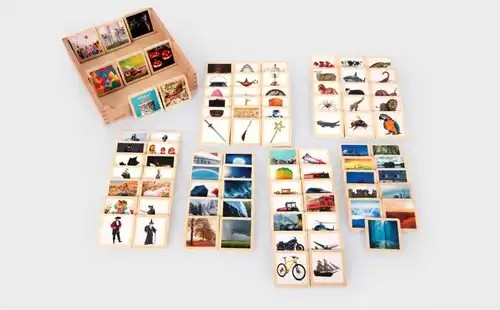 El conjunt inclou 90 fitxes de fusta resistents, amb imatges fotogràfiques de diverses categories: animals, personatges, llocs, mitjans de transport, celebracions, fenòmens meteorològics i objectes fascinants.