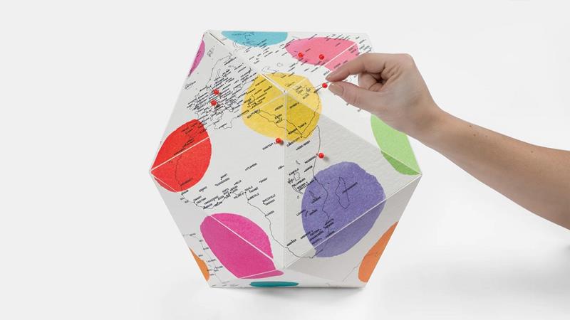 World maps are the result of processes in which technical, geographical and mathematical aspects are intertwined with personal, aesthetic, political, emotional and religious motivations.I thought of a world without borders, cheerful and naive, as I would like it to be. — Guido ScarabottoloEach globe...